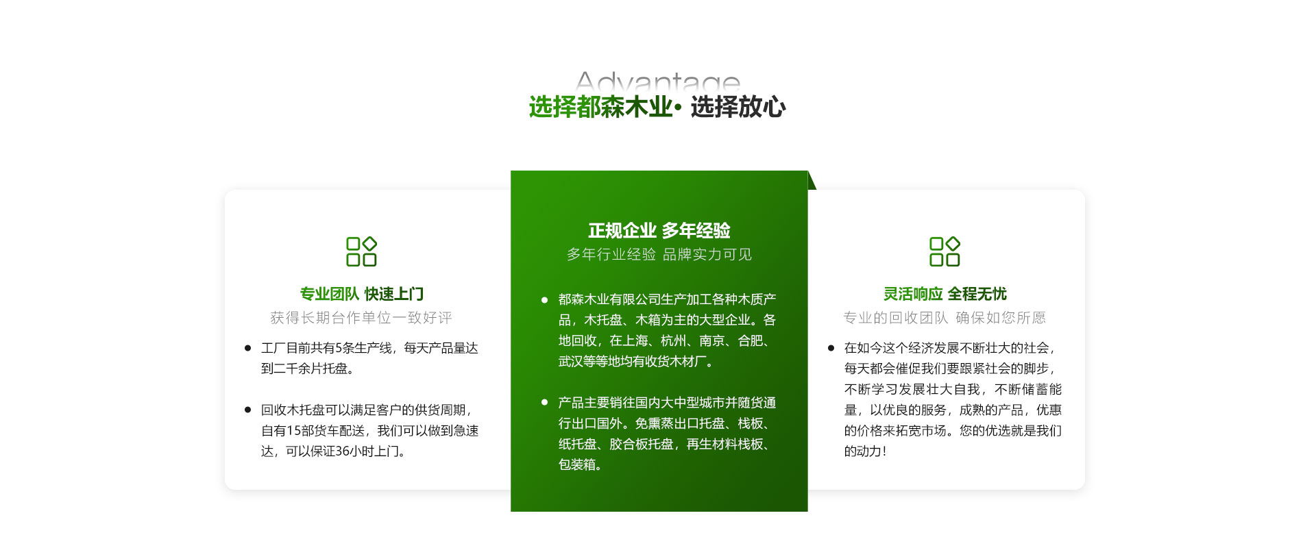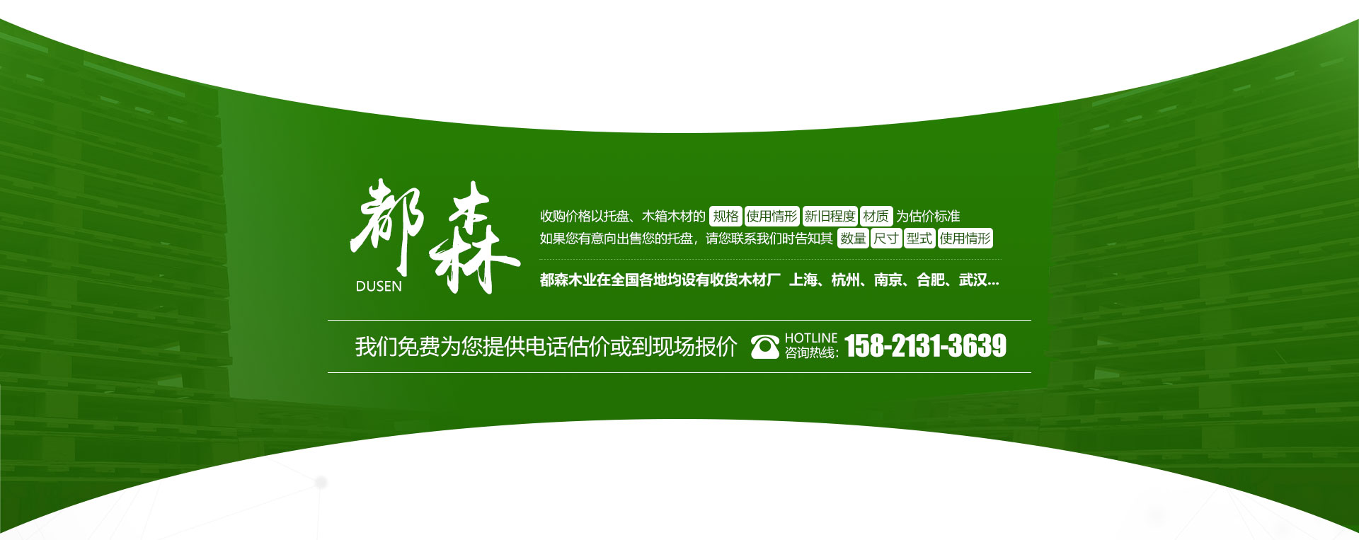都森木業(yè)有限公司是一家以回收木托盤(pán)、木材,生產(chǎn)加工各種木質(zhì)產(chǎn)品,木托盤(pán)、木箱為主的大型企業(yè)。自建公司以來(lái),我公司根據(jù)市場(chǎng)經(jīng)濟(jì)的發(fā)展趨勢(shì),在經(jīng)濟(jì)逐步前進(jìn)的前提下發(fā)展壯大自己,不斷引入先進(jìn)的生產(chǎn)設(shè)備,科學(xué)的管理理念,過(guò)硬的生產(chǎn)技術(shù)和嚴(yán)密的質(zhì)量管理體系。加工:公司下轄木材加工廠,組裝廠,并備有大型標(biāo)準(zhǔn)烘房,多功能平板刨,壓刨,挖槽,機(jī)械設(shè)備等。產(chǎn)品主要銷往國(guó)內(nèi)大中型城市并隨貨通行出口國(guó)外。免熏蒸出口托盤(pán)、棧板、紙托盤(pán)、膠合板托盤(pán),再生材料棧板、包裝箱。工廠目前共有5條生產(chǎn)線,每天產(chǎn)品量達(dá)到二千余片托盤(pán)。可以滿足客戶的供貨周期,自有10部貨車配送,我們可以做到急速達(dá)。回收:公司建立以來(lái)長(zhǎng)期以現(xiàn)金收購(gòu)各種規(guī)格木托盤(pán),塑料托盤(pán),棧板,復(fù)合托盤(pán),木箱,收購(gòu)價(jià)格以托盤(pán)木箱的規(guī)格、使用情形、新舊程度、材質(zhì)為估價(jià)標(biāo)準(zhǔn)。可上面看貨。我們將以豐富的知識(shí),提供“量身定做”的方案來(lái)服務(wù)和滿足每一用戶不同的需求,現(xiàn)金...